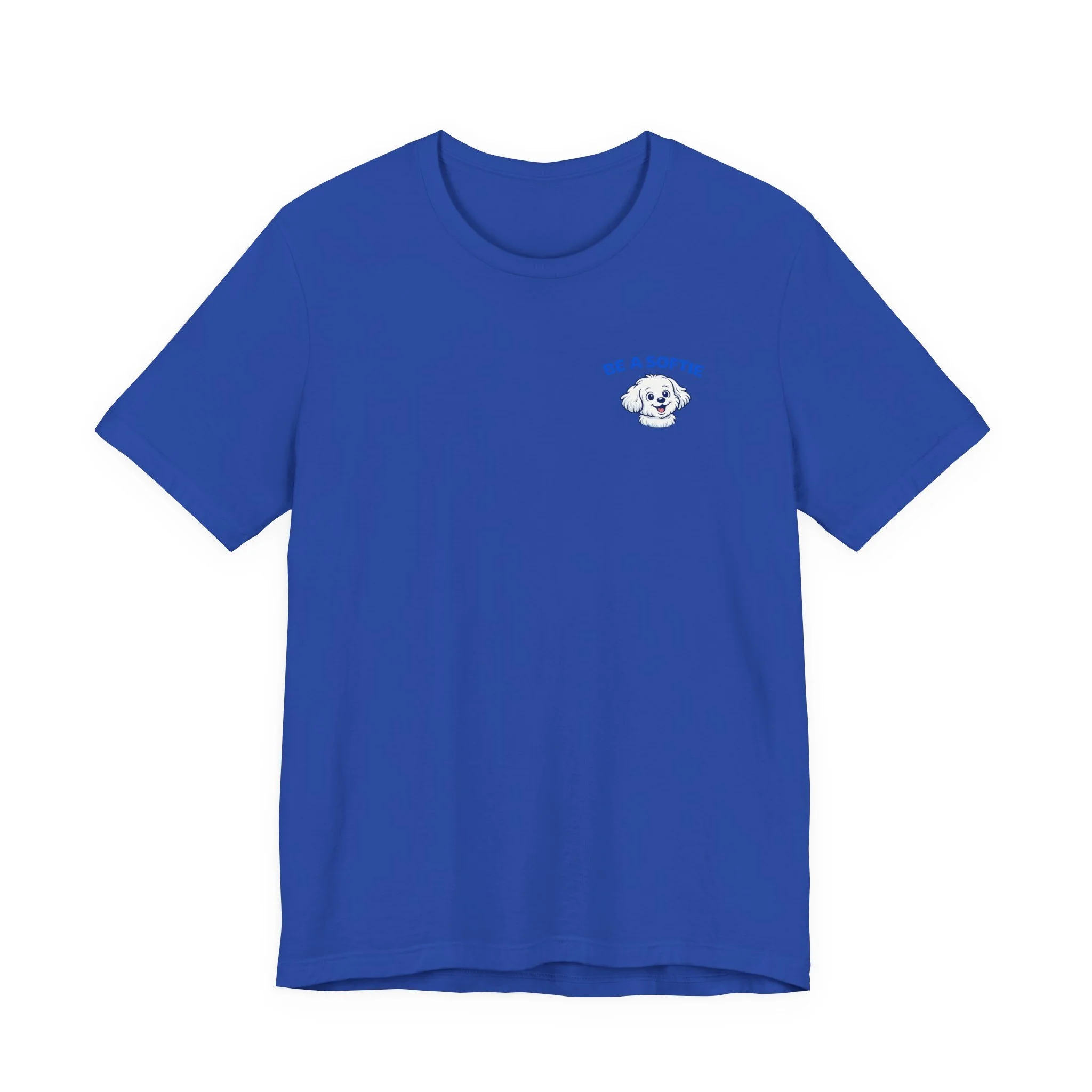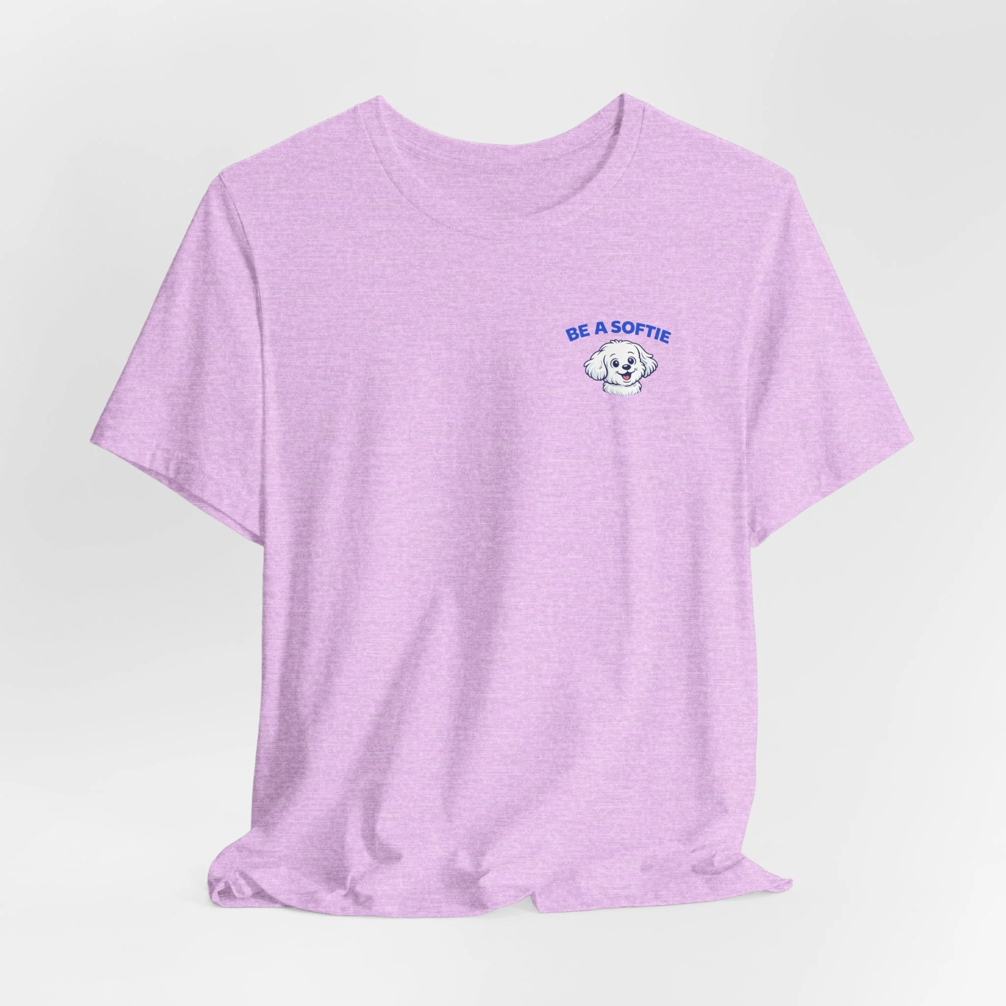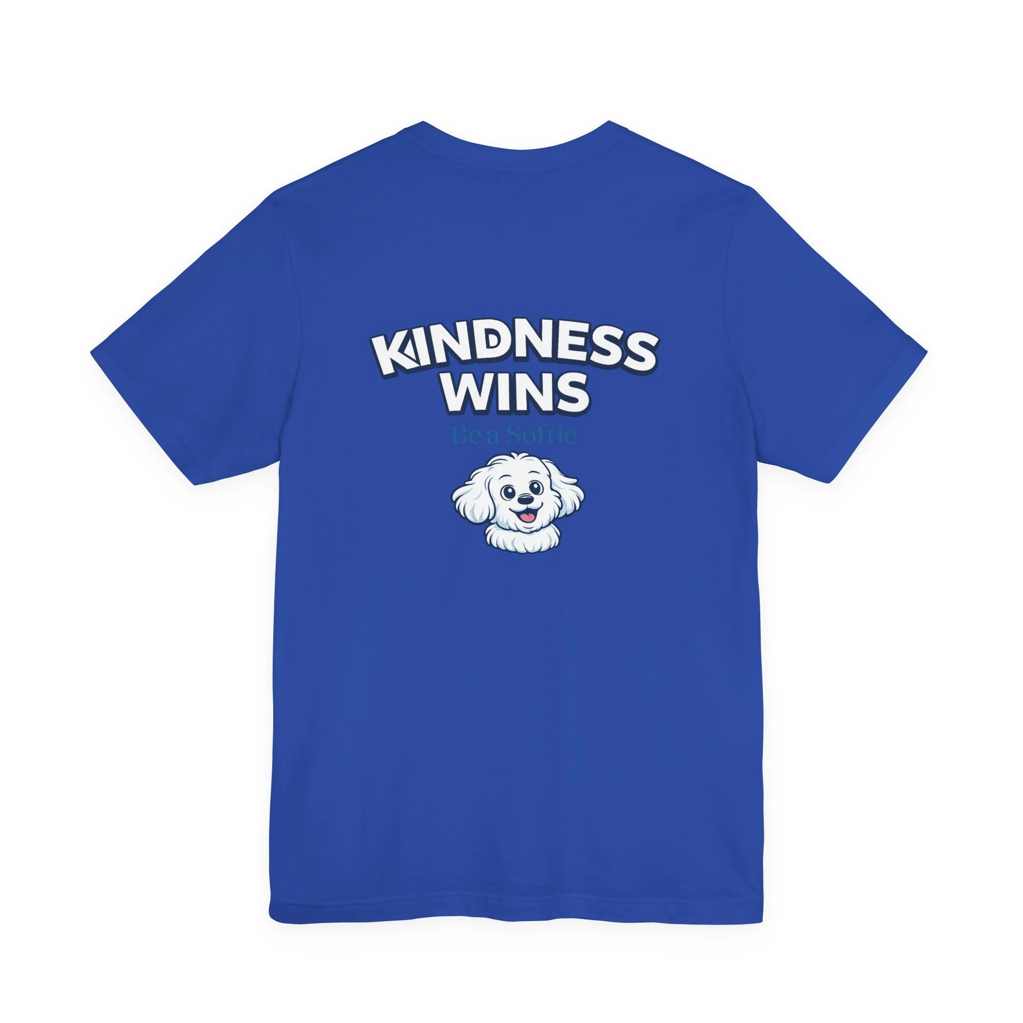 Designed with a clean, modern fit and ultra-soft feel, this is the kind of tee you’ll reach for again and again. The front keeps it simple with the Be a Softie logo, while the back makes a statement with a bold “Kindness Wins” message and our signature pup.